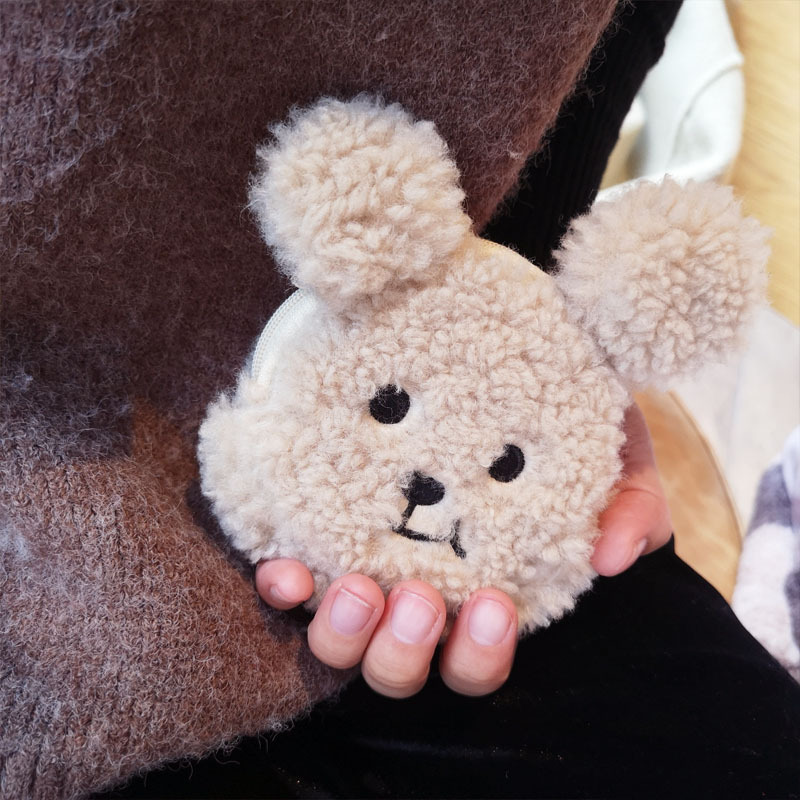 Made from durable linen fabric with a soft plush finish, this adorable bear-shaped pouch features a smooth zipper closure that safely holds your coins, keys, cash, or lip balm.